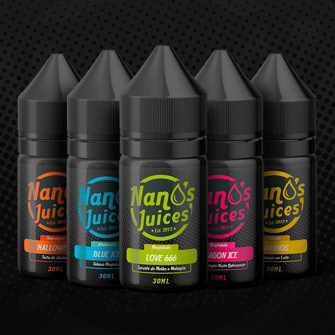 No mercado de líquidos para vaporizadores, a identidade visual é o que diferencia uma marca. Neste projeto, meu foco foi a criação completa do branding para as marcas Nano’s Juices, FruitIce e Sphinx Liquids.
